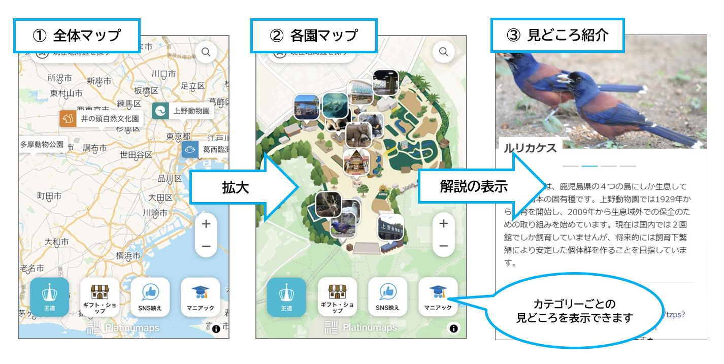 恩賜上野動物園(園長 福田豊)、多摩動物公園(園長 渡部浩文)、井の頭自然文化園(園長 永井清)、葛西臨海水族園(園長 錦織一臣)では、「都立動物園・水族園 見どころデジタルマップ」を公開しました。